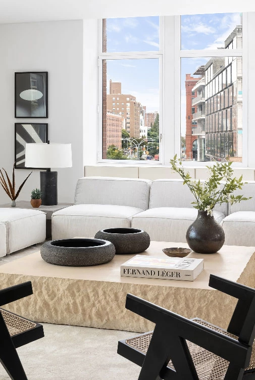 The fourth-floor Manhattan property is listed via Emily Beare of CORE NYC and comprises two units that have been combined to create a roomy 2,427sq ft loft. The minimalist home has been decked out with earthy colours, limestone floors and solid stone surfaces – an update from when the Wests sold it in 2018.
