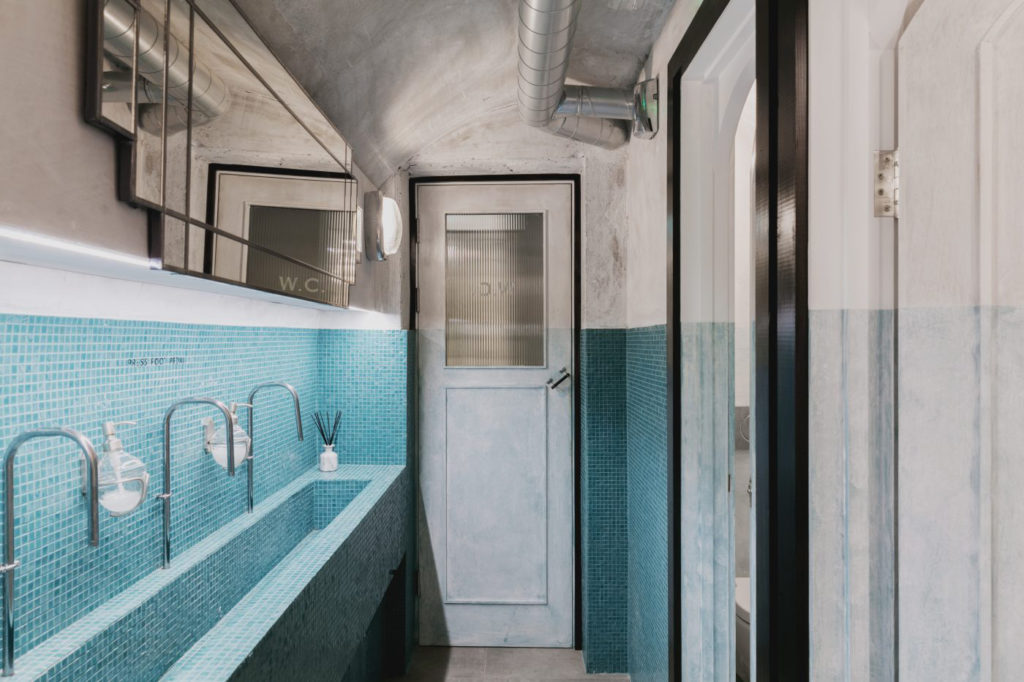 There are plenty of art deco flourishes to be found too, including fluted glass, globe lighting wall pendants and green leather bar stools and booths, which are used throughout the space.