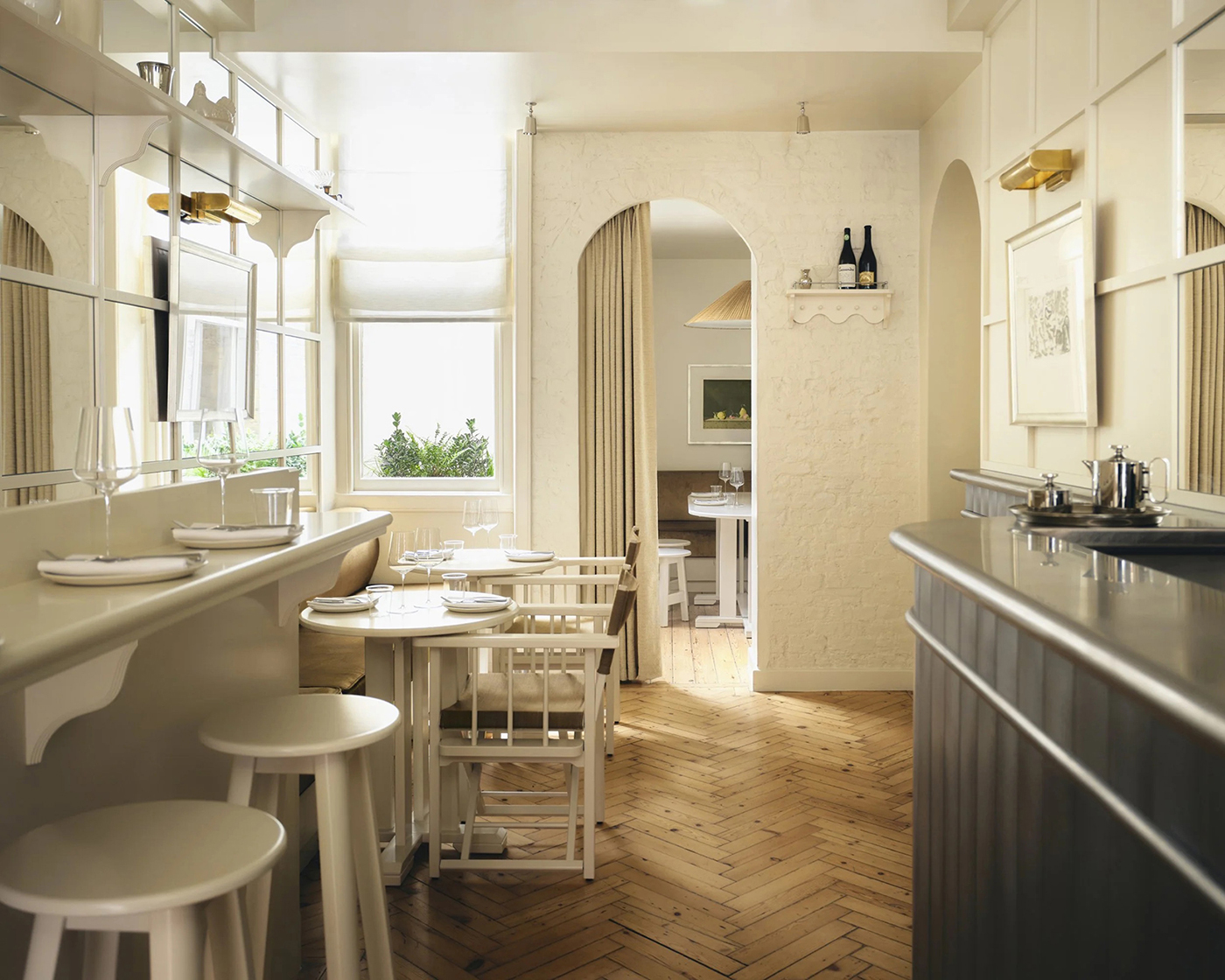 Travel to France’s Occitane region without leaving home at the new eatery Maset, opened by Melody Adams on buzzing Chiltern Street. Parisian studio Haddou-Dufourcq curated the interiors with a cosy, relaxed feel, pairing wood elements inspired by classic seaside models with a sculptural stainless-steel bar that adds a modern touch to the traditional French bistro vibe. Tactile textures, an off-white palette and mirrors create a breezy atmosphere that reflects southern specialities like bouillabaisse; croquettes and crisp panisse with anchoïade; and monkfish with lardo, Moroccan lemon, seabeets and verjus.
