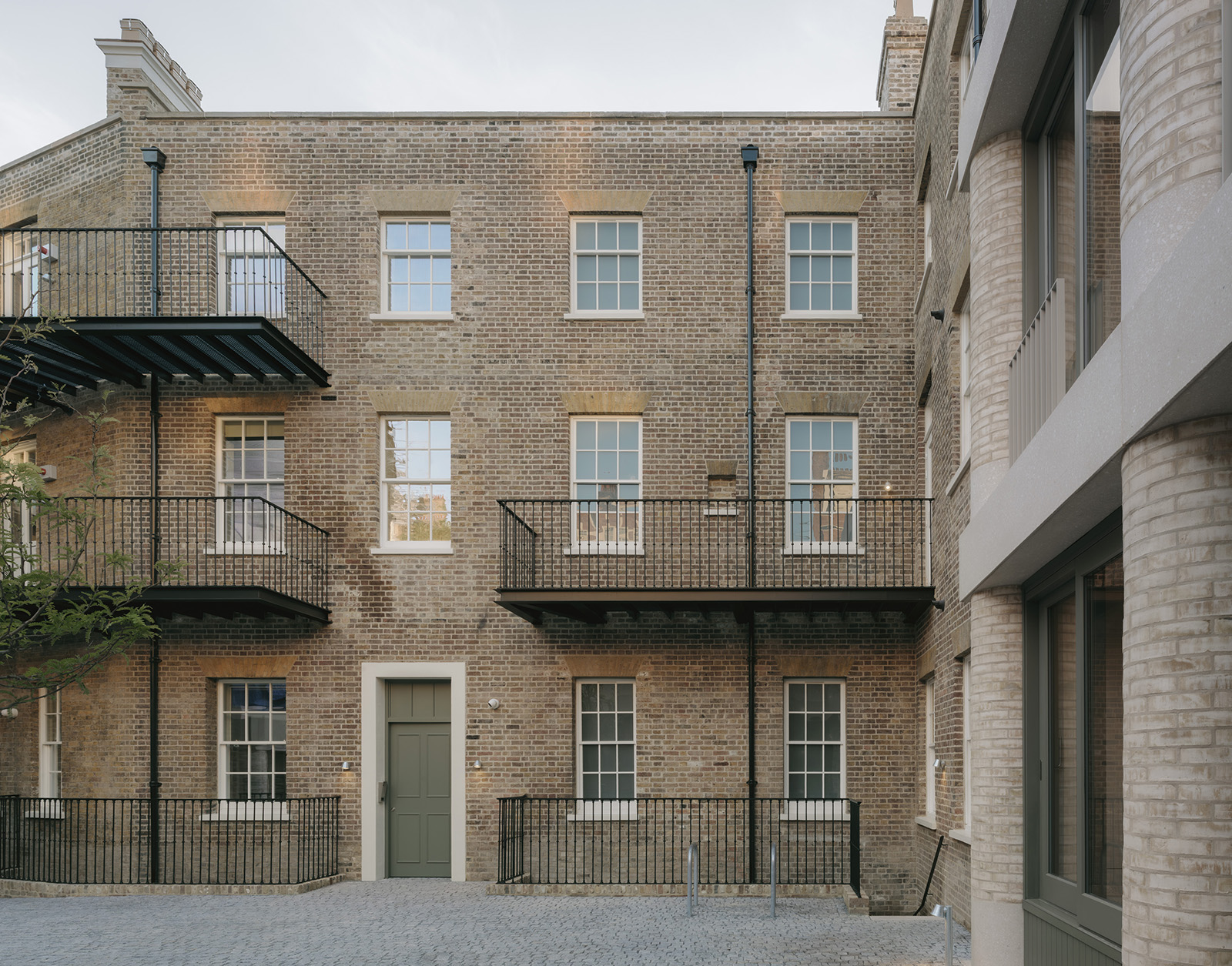 A different sort of occupant slept here once upon a time, when this corner block in North London served as the police headquarters for leafy St Johns Wood. The Victorian façade is still pleasantly golden, affixed with its original iron lantern and Gibbs brickwork. But round back, a recent development by Wendover has opened it up into nine creamy, sunlit apartments around a European-style courtyard. The new annex, Wendover’s debut rental project, reflects the material language of the original building using paler brick and softer shapes for a more contemporary, more genteel resident.