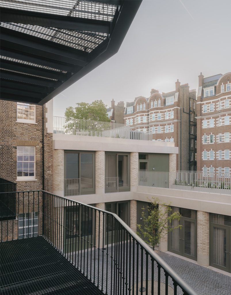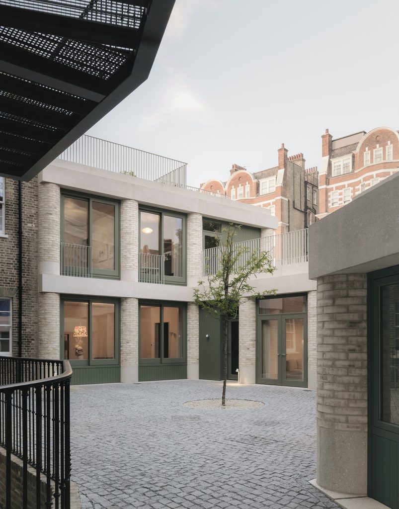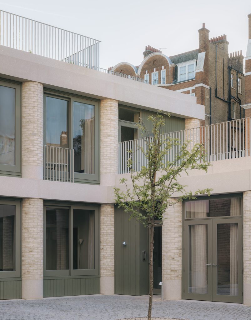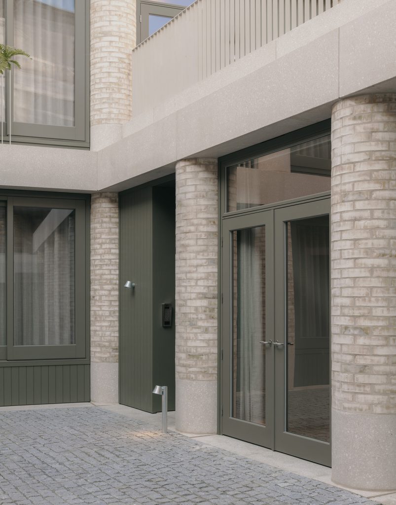 A different sort of occupant slept here once upon a time, when this corner block in North London served as the police headquarters for leafy St Johns Wood. The Victorian façade is still pleasantly golden, affixed with its original iron lantern and Gibbs brickwork. But round back, a recent development by Wendover has opened it up into nine creamy, sunlit apartments around a European-style courtyard. The new annex, Wendover’s debut rental project, reflects the material language of the original building using paler brick and softer shapes for a more contemporary, more genteel resident.
