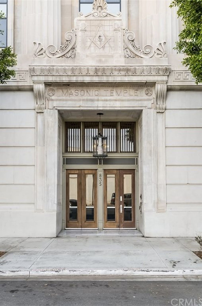 The two-bedroom property occupies the former freemason headquarters of Long Beach, which were designed by local architects Parker O Wright and Francis H Gentry, and constructed in 1927.