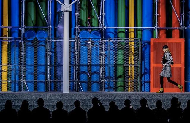 Nicolas Ghesquière caused moments of profound confusion at his Louis Vuitton presentation last night, ushering guests through the doors of the Louvre only for them to find themselves transported a kilometre to the west, into the courtyard of the Centre Pompidou.