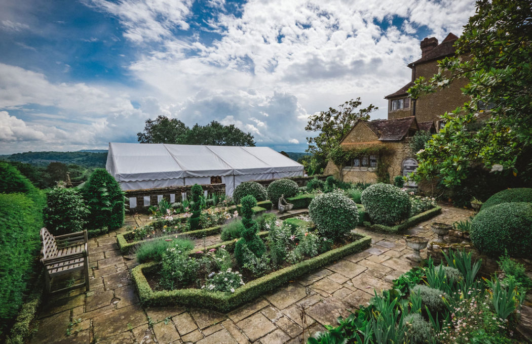 At the heart of the building is the Great Hall, which features tracery windows, an oak-panelled ceiling and a Bath stone fireplace. The house itself is constructed from honey-coloured Bargate stone, quarried from the property’s hillside setting.