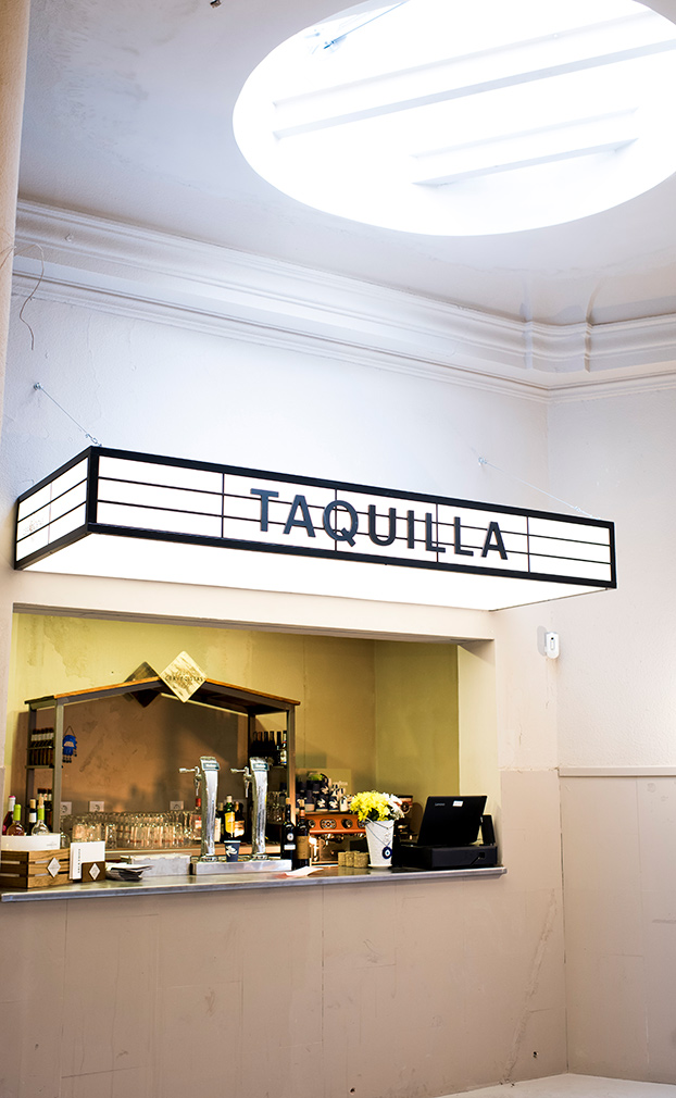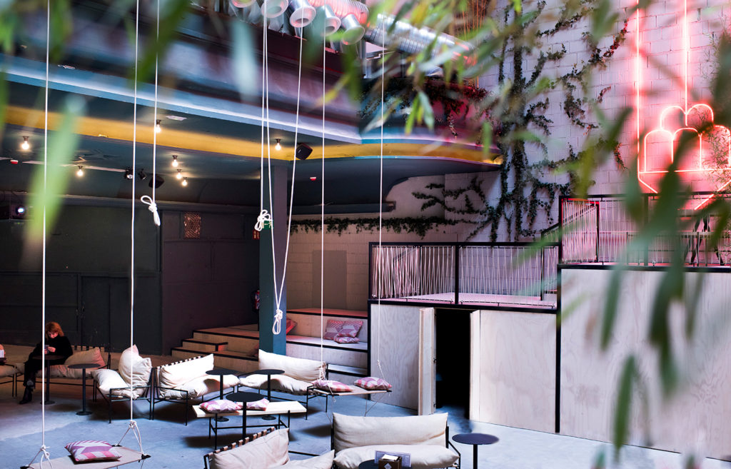 In the Sala Plaza – the heart of the 700 sqm complex – the Alba’s original bar has been retained and the space is capped by a large skylight. Vines climb the walls, and the practice has installed custom-built bleachers, swing sets and chairs into the hall. Patrons can grab a beer and a bite to eat while watching movies on a projector screen, or catch a live acoustic performance, with offerings including shrimp wraps with kimchi and oxtail baocatas.