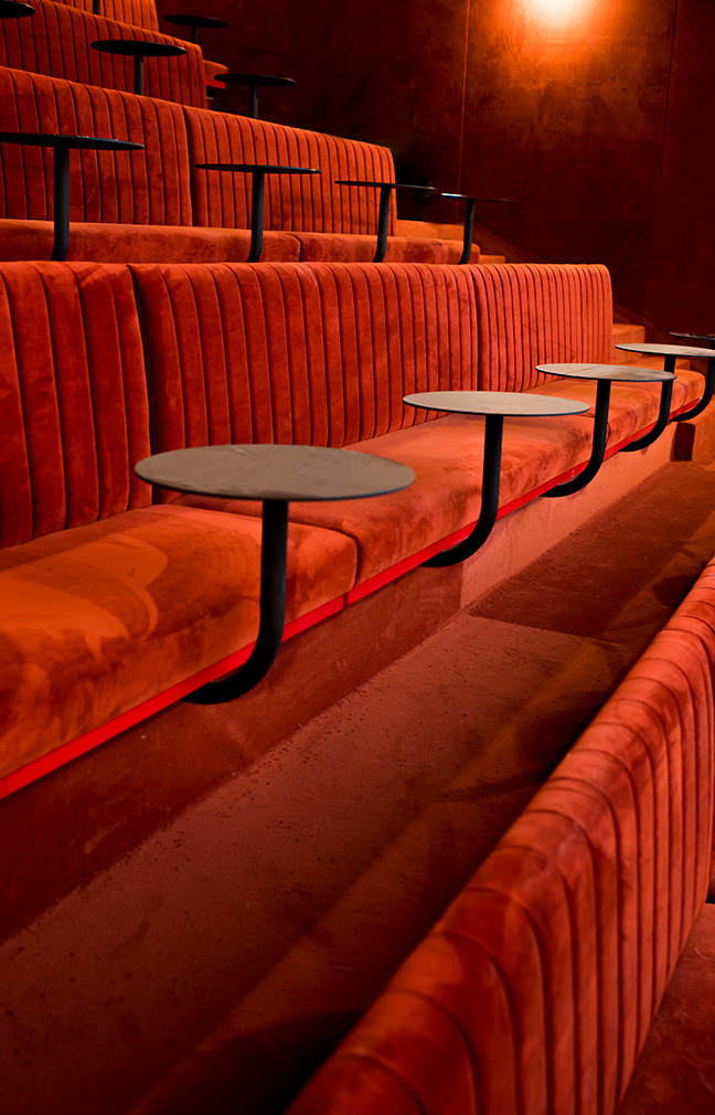 Following the success of their restaurant, the collective enlisted architects Paco Genovart and Sergio López’s practice Payser, along with interior firm Plantea Estudio to phase 2 of the project. They transformed the defunct Alba into a new bar, restaurant, performance venue and boutique cinema – minus the X-rated movies.