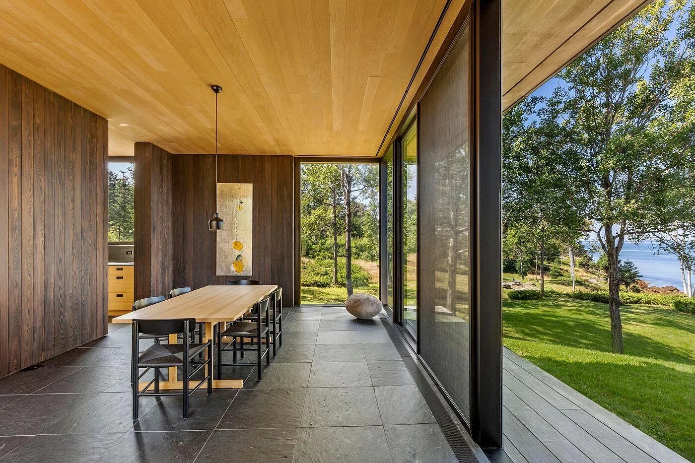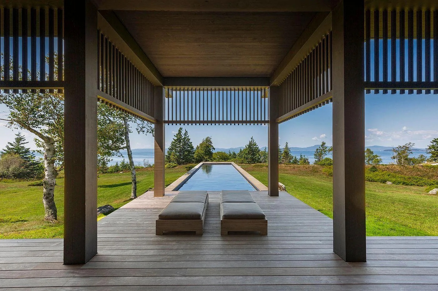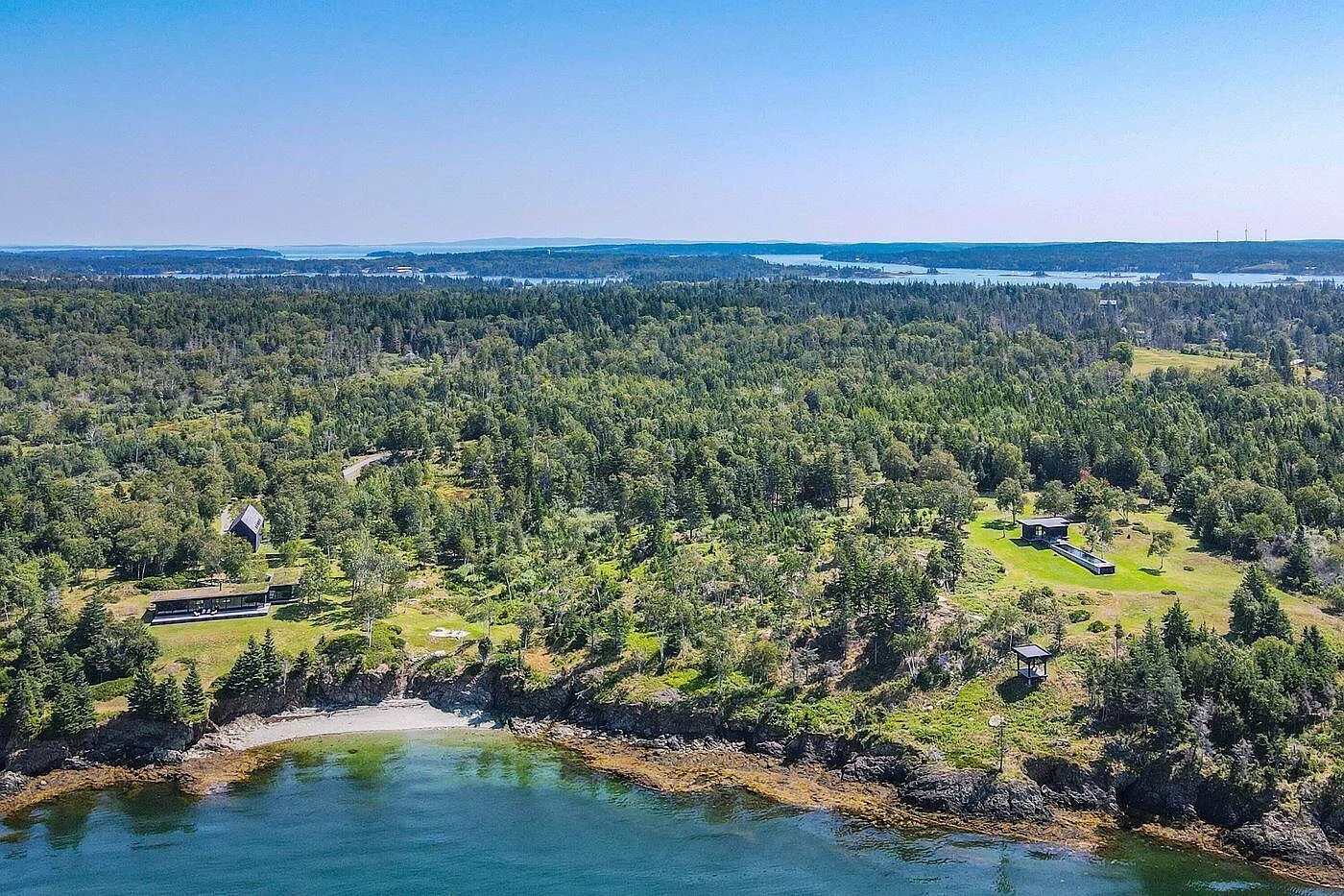 Maine‘s moneyed east coast gets its fair share of gawkers. But not this island on West Penobscot Bay, unknown by Google Maps. Splayed across North Haven’s northwest shore, this new listing sits on 25 private acres landscaped by Michael Van Valkenburgh Associates, with 1,080 feet of granite shorefront and pebble beach. From several curated outdoor living areas, the property gets its own gawking rights over the bay to the Camden Hills.