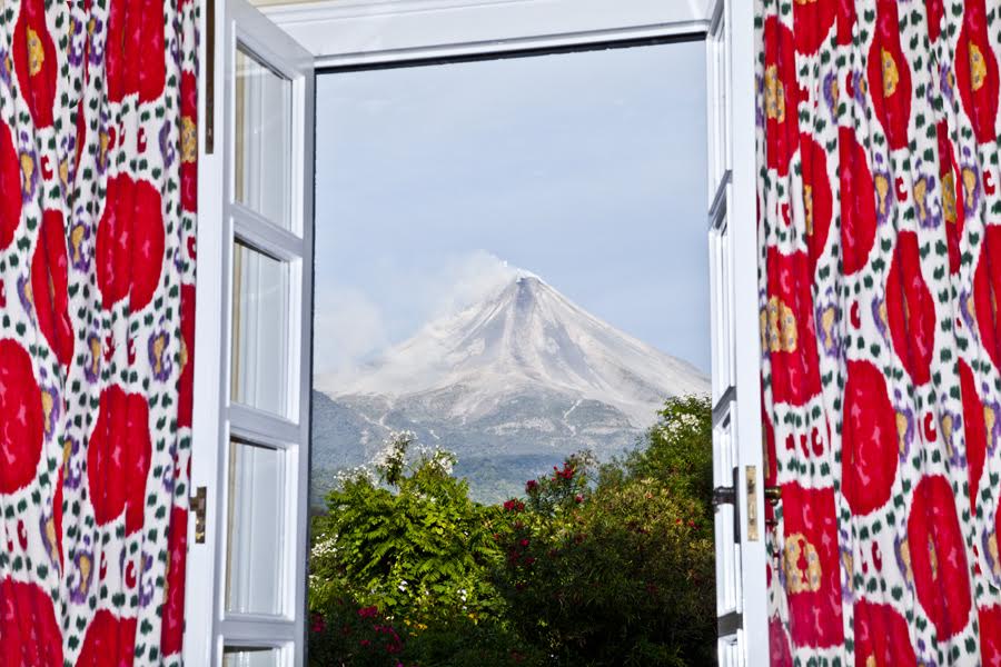 With images ranging from dolphins leaping over modernist homes to mountain peaks framed by chintz curtains, passerby are in for a surprise.