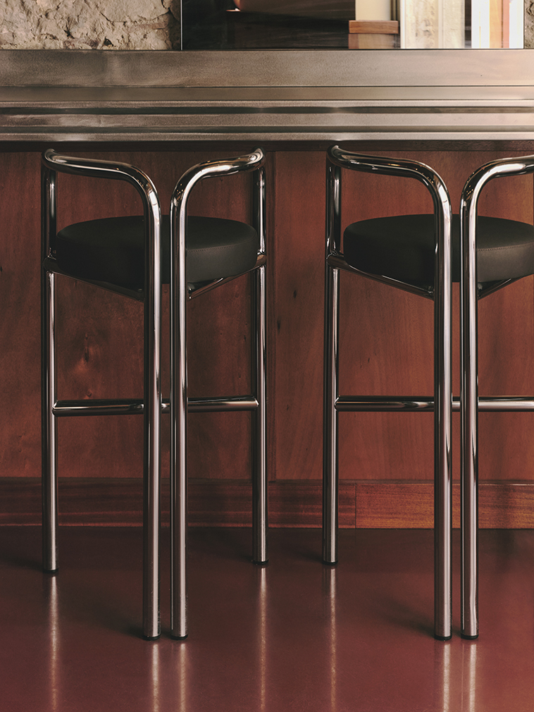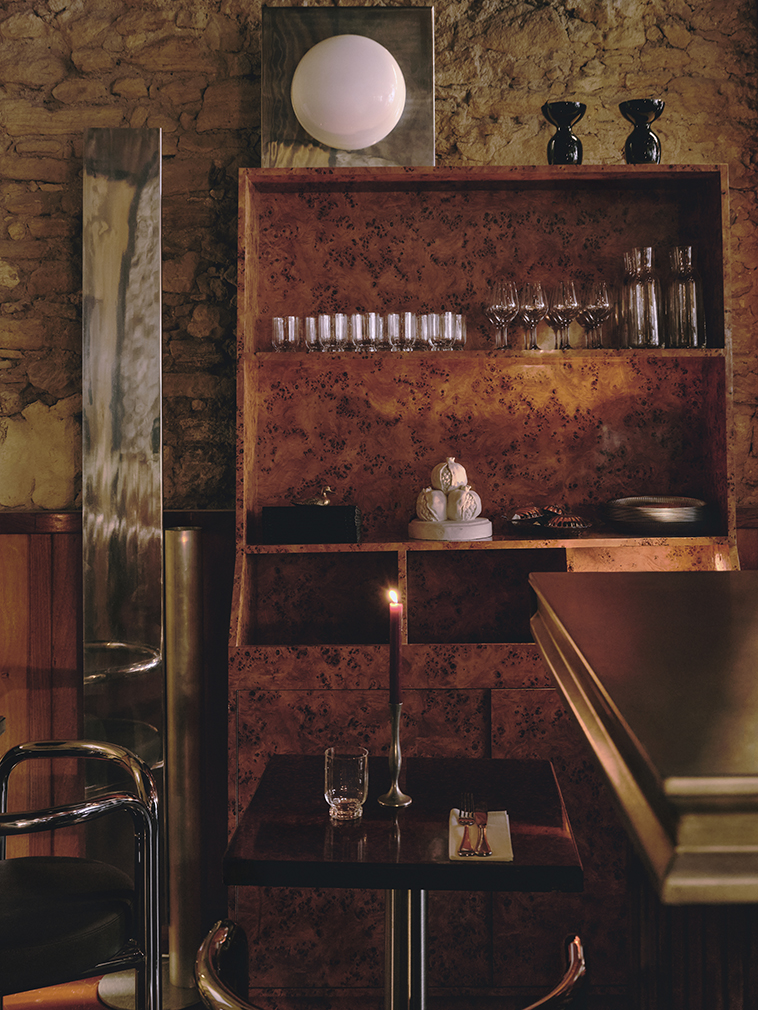 The overall mood is warm with unmistakable 1970s undertones. ‘We didn’t try to recreate patina or mimic “oldness”,’ say the Chays. ‘Instead, we focused on materials and gestures that carry familiarity. We wanted to reinterpret the codes of old bars and make them feel fresh yet known. Marseille has this mix of roughness and elegance, spontaneity and intensity. We wanted the space to reflect that duality — instantly comfortable, yet unmistakably alive.’
