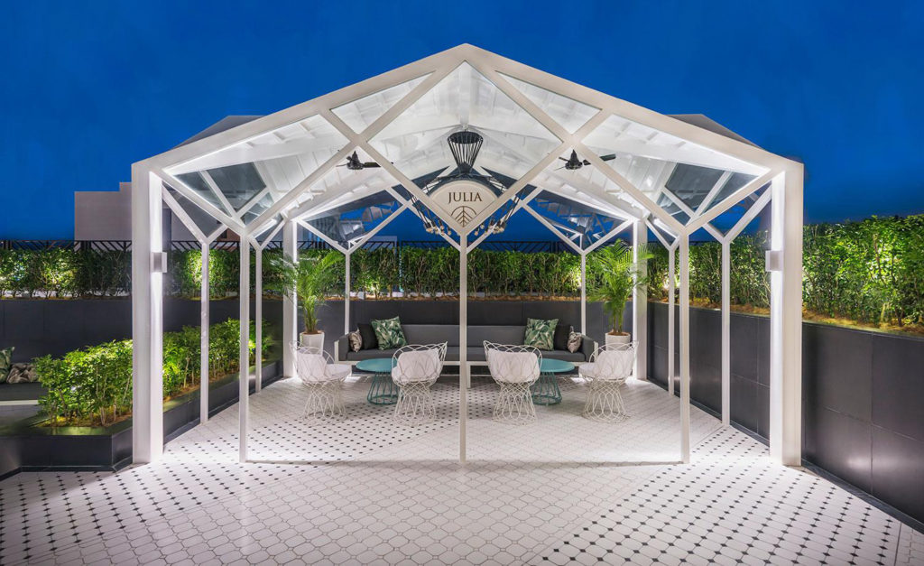 Guest suites – which start from RM420 – have clean lines and a simple colour palette. However, in the downstairs restaurant, the Victorian influence is apparent thanks to monochrome patterned floors and a hothouse-style collection of plants. In the evening, guests can sip a cocktail on the roof terrace or take a dip in The Prestige’s saltwater pool.