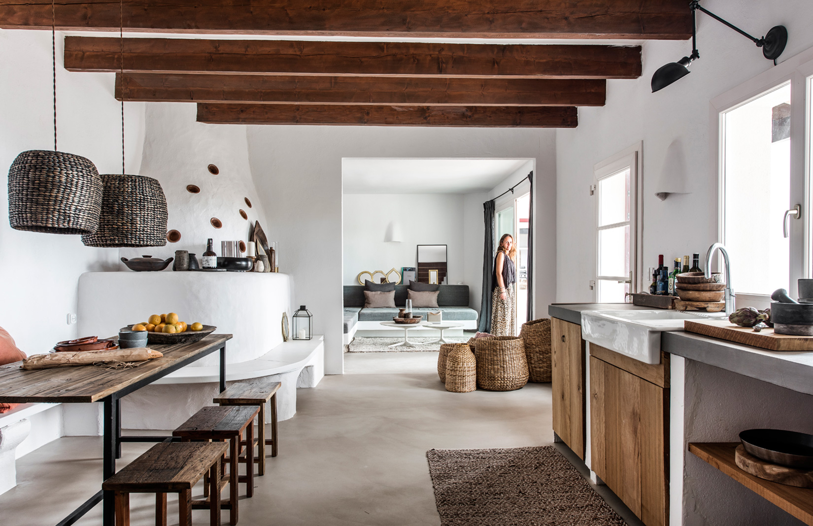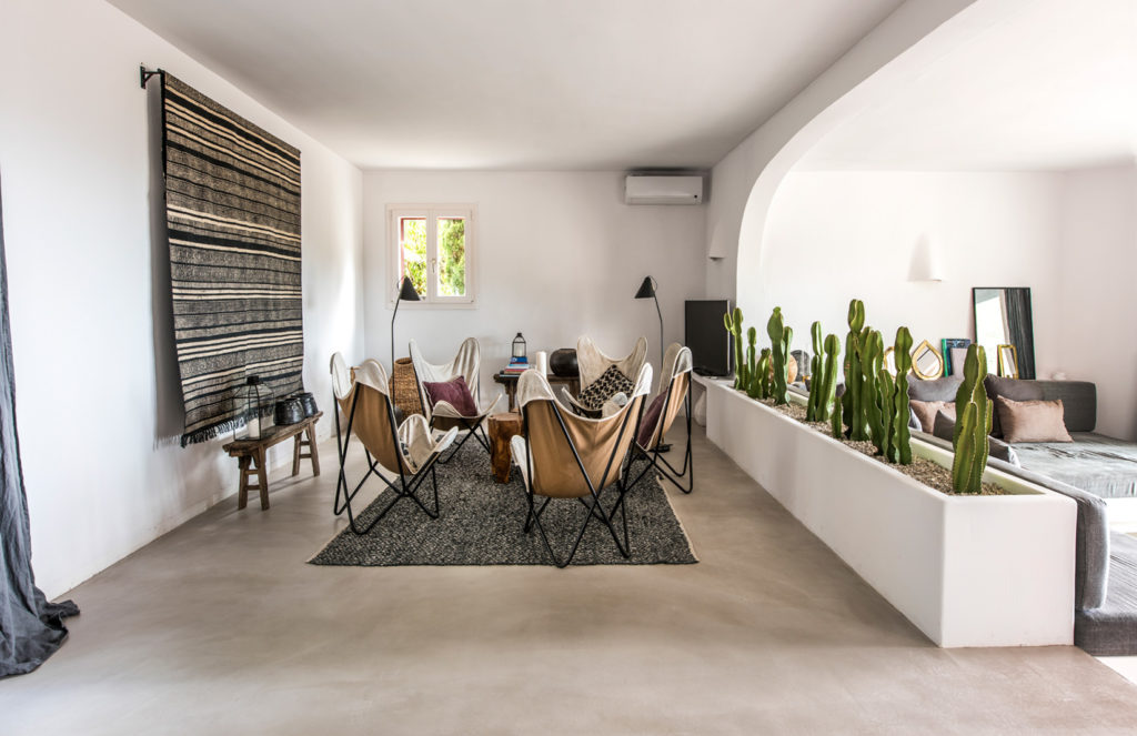 The five-bedroom island home was built in the 1980s but has been given a top-to-toe makeover by its Danish owners Bente and Mikkel Tang-Henriksen. They have reimagined its interiors as pristine open-plan spaces that mix Spanish and Nordic design elements with contemporary concrete finishes.