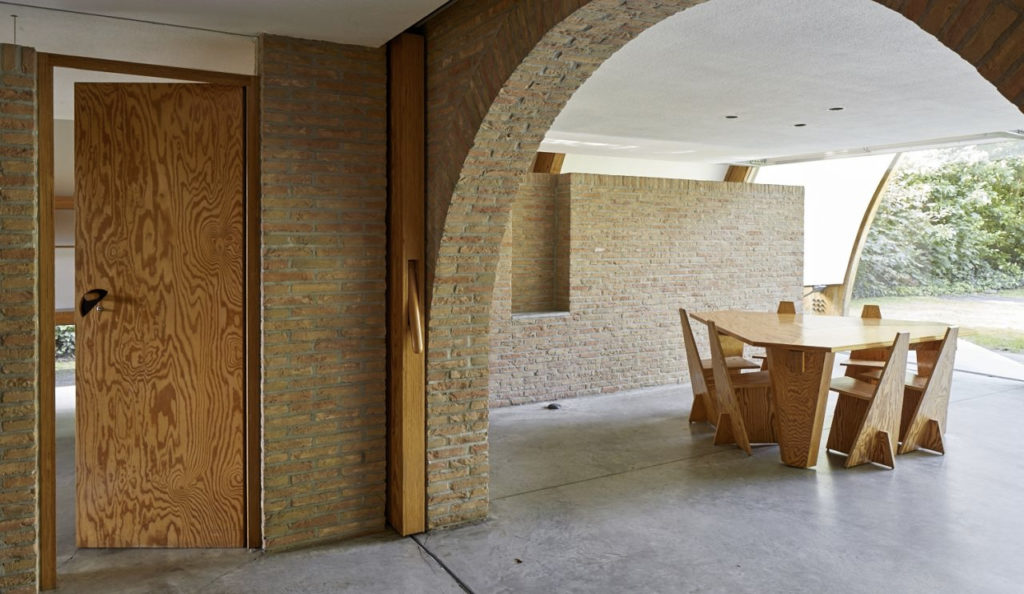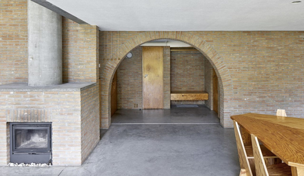 This Belgian property is built from concrete and brick, and its arching design evokes the shape of a rainbow.