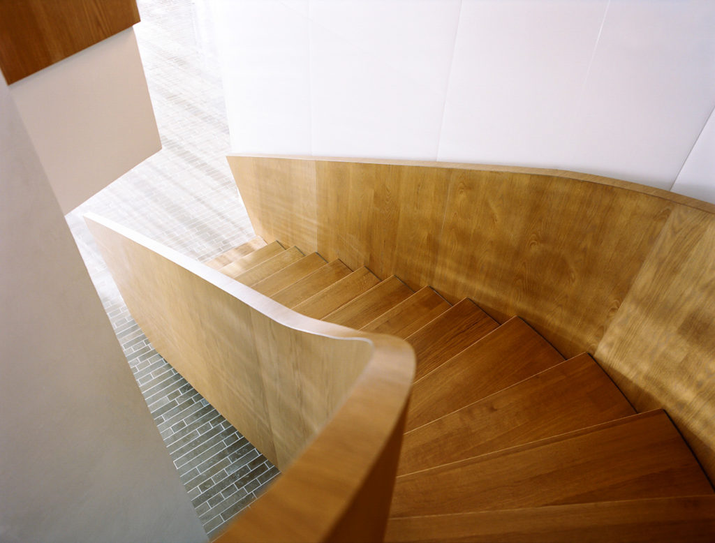 Oak joinery adds a sense of craftsmanship through the restaurant and tapas bar, starting with a sweeping freestanding staircase on the ground floor – which is set in a double-height void – and continuing with planters and banquette seating on the first floor.
