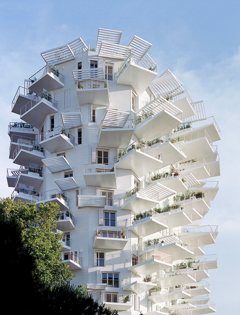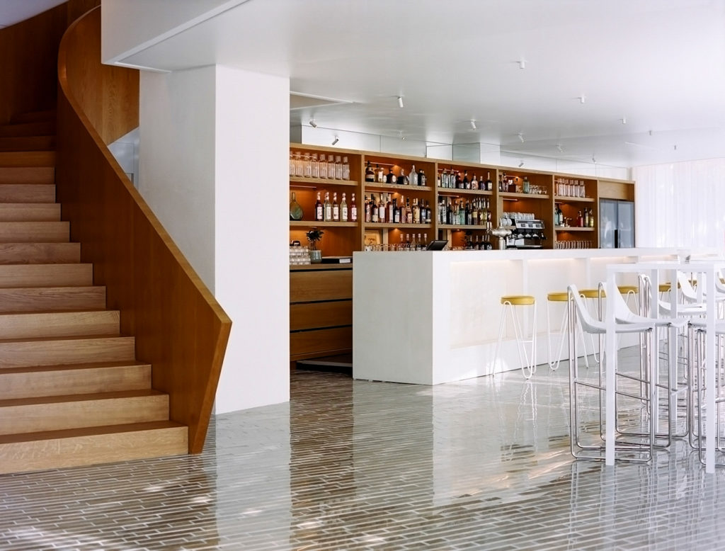 Wood and white spaces form the interiors of Montpellier’s L’Arbre restaurant and rooftop