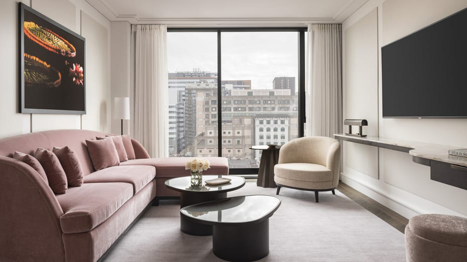 Things are a little more restrained in the Four Seasons 169 rooms, which start from $505 CAD per night. Expect minimalist four-poster beds and chunky backlit mirrors that reflect the views across the city.
