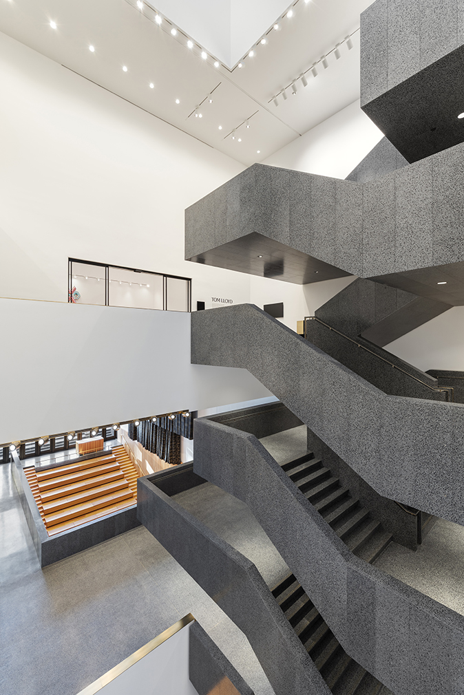 Encouraging human engagement, both staunchly 21st-century museums unquestionably owe a design debt to Marcel Breuer’s former Whitney Museum of American Art, completed in 1966 on the Upper East Side. Initially perceived as aggressive and bestial, the whale-grey granite behemoth with its stepped façade cantilevering over Madison Avenue grew on New Yorkers, who came to take pride in its radical statement and embrace the Bauhaus architect’s playful trapezoidal windows. Earlier this month, Herzog & de Meuron completed a comprehensive refresh to the monolith now known as the Breuer Building, restoring the original bluestone floors, distinctive ceiling lights and legendary sculptural staircase (rare protected interiors) for a new tenant: Sotheby’s. Among the more significant changes, they restored the gallery layouts to Breuer’s original designs, for displaying the auction house’s art and luxury goods.