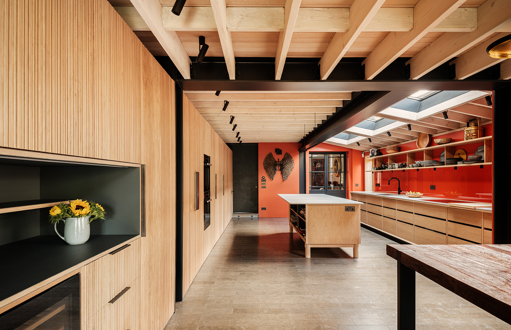Carefully positioned timber planks and fins can effectively divide rooms. And the absence of a solid wall in favour of staggered partitions allows space for light and shadow. Architectural design studio Echlin has done just that in an Oxfordshire home, working alongside NCA Architecture.