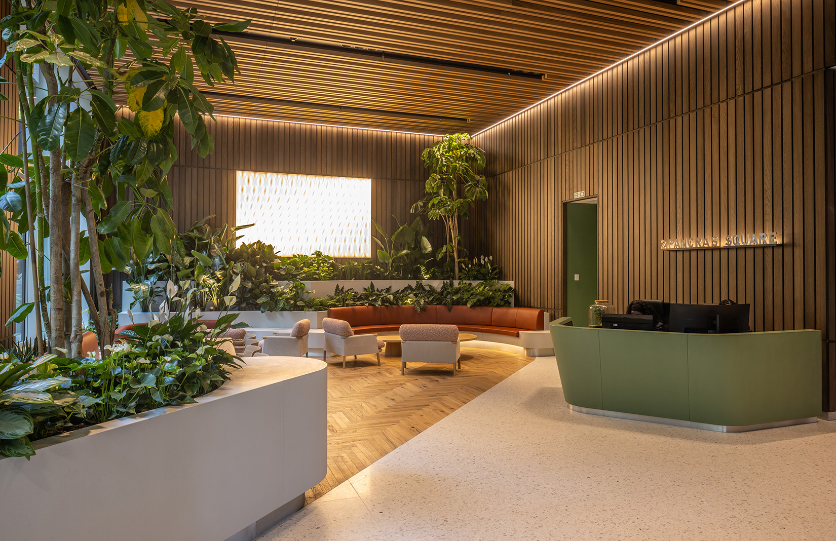 The wood panelling at 2 St Pancras Square, at the core of the 67-acre King’s Cross redevelopment, isn’t new. That’s precisely what makes it so interesting. Part of the block’s recent renovation, the existing slats were taken down, re-stained and applied with veneer to give them a modern lift — testaments to longevity and a prime example of how a space can be reinvigorated using original features.
