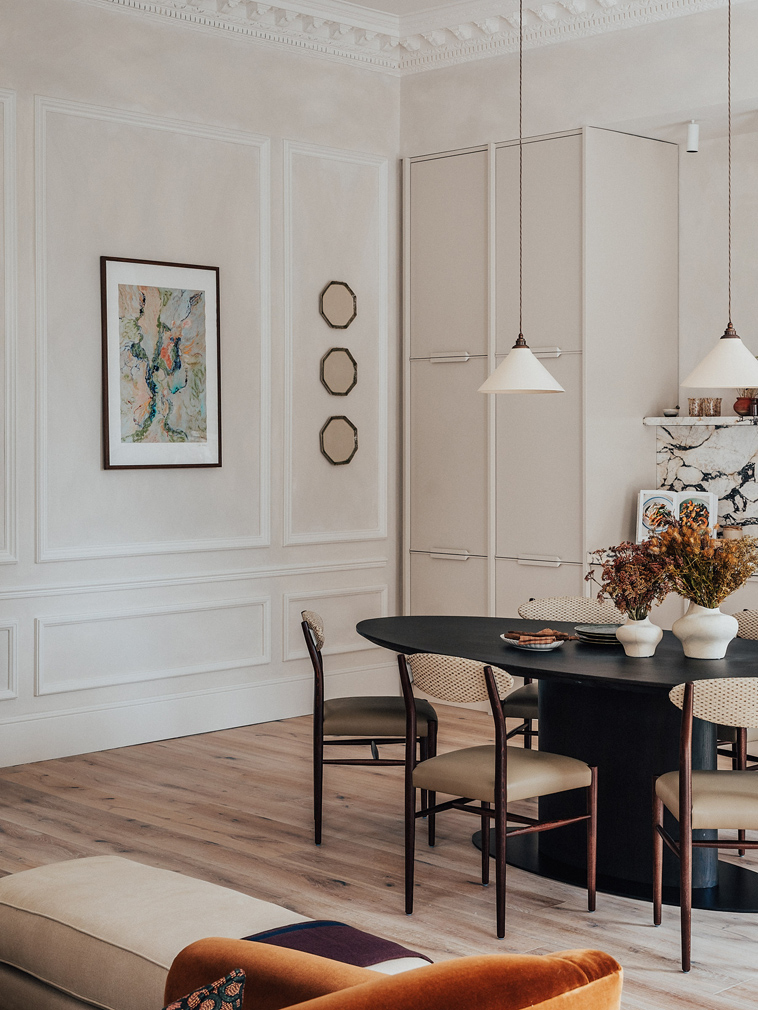 Spanning two architecturally significant buildings — a restored Grade II listed Georgian townhouse and a post-war reconstruction reimagined by architecture practice Buckley Gray Yeoman — a two-bedroom apartment has been designed by interiors studio A.London.