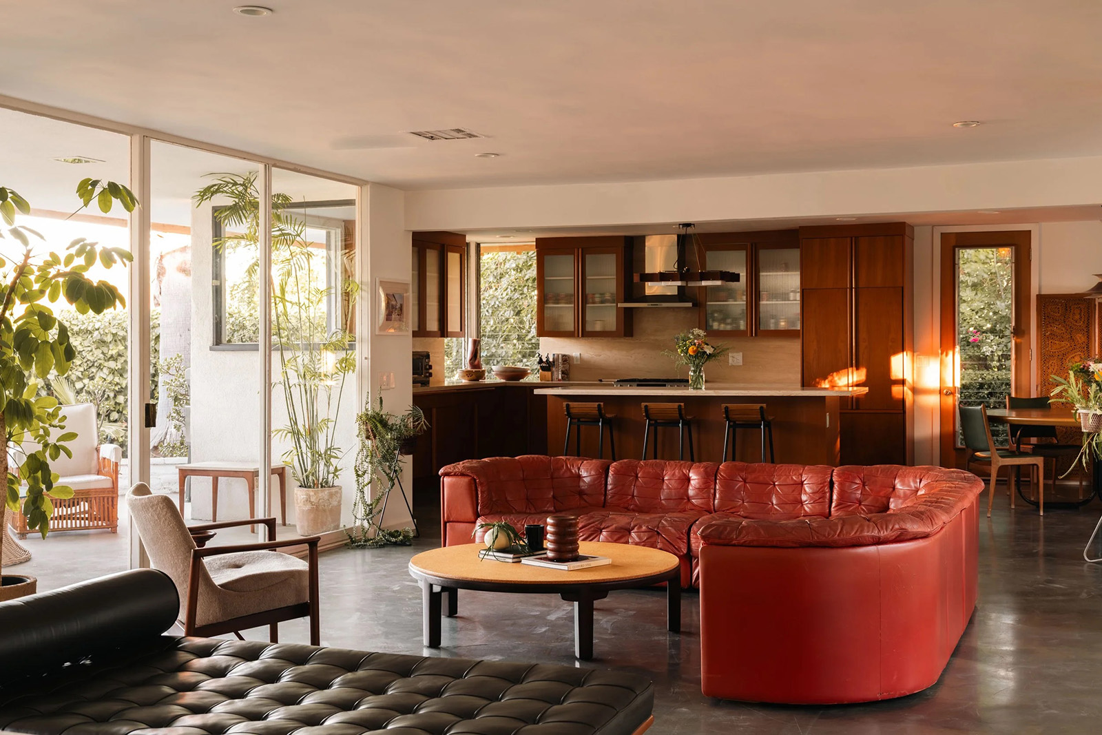 At the Parr Residence, architecture reveals itself inwardly. A shallow reflecting pool and garden courtyard form the heart of the plan, pulling daylight into the house and establishing a dialogue between openness and enclosure. Designed in 1954 by Lucille Raport, a disciple of Richard Neutra, the bungalow carries the hallmarks of West Coast modernism while maintaining a sense of privacy rare in the Hollywood Hills.