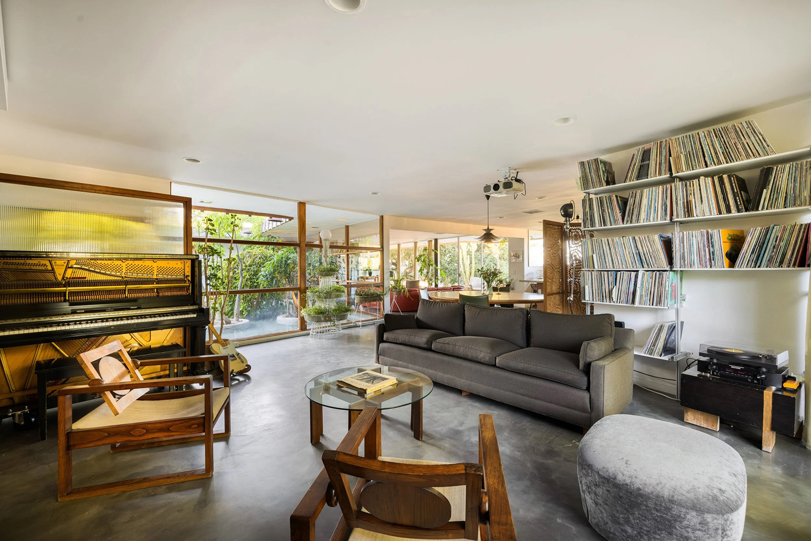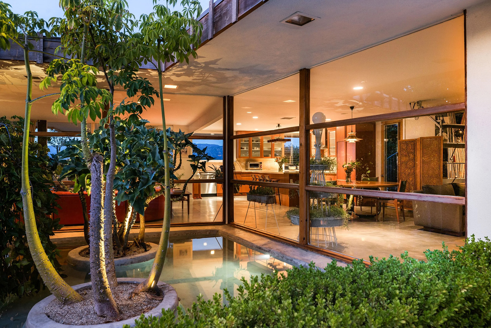 Outside, the pool and surrounding gardens create a sequence of sheltered terraces that extend life into the landscape. The house was photographed by Julius Shulman, cementing its place within the history of Los Angeles modernism. It’s currently listed for $3.495 million.