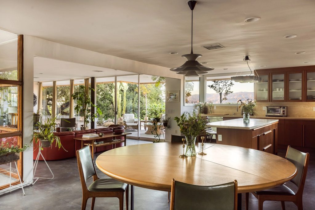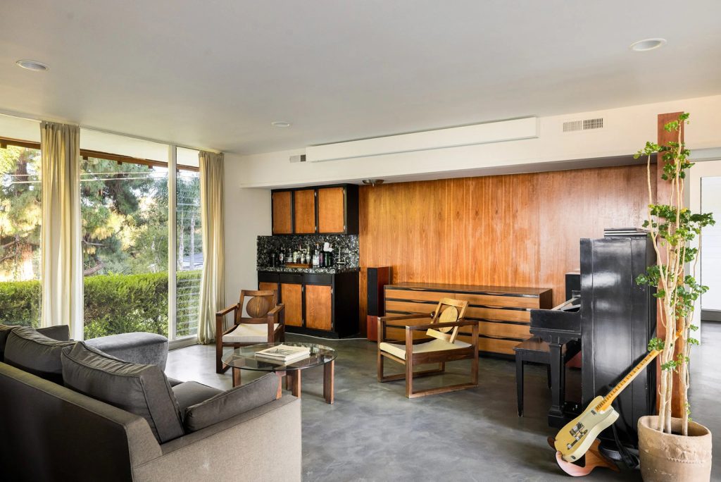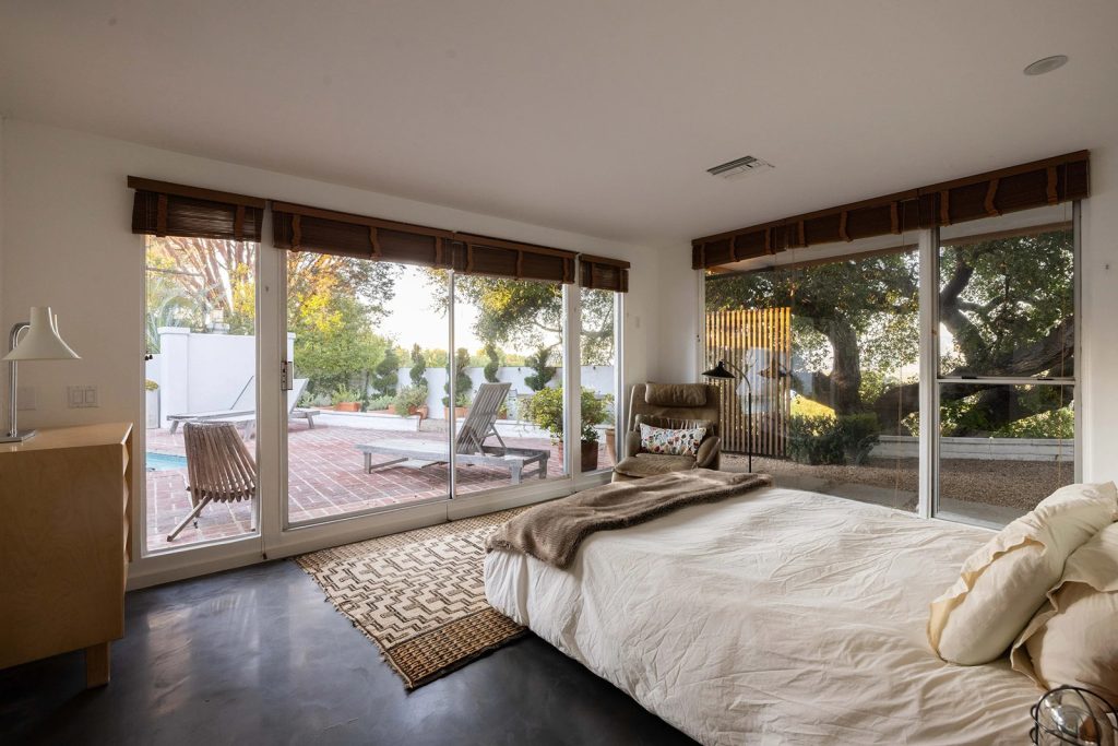 Outside, the pool and surrounding gardens create a sequence of sheltered terraces that extend life into the landscape. The house was photographed by Julius Shulman, cementing its place within the history of Los Angeles modernism. It’s currently listed for $3.495 million.