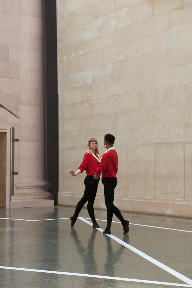 ‘The space is a falsified historical space, and I brought in the movement as an equivalent – the dancers move in a comparable way,’ explains Bronstein. ‘It’s a bit of a statement on the architecture and the fiddles you find in very severe spaces – the Duveen galleries are very brutal spaces that have these little flourishes.’