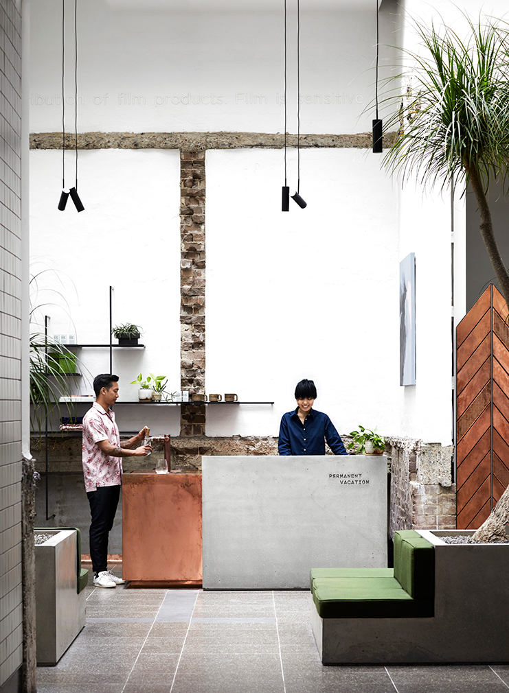 Paramount House Hotel is the first offering from Mark Dundon, Russell Beard and Ping Jin Ng — the team behind Sydney café favourites Reuben Hills and Bondi Hall. Aiming to connect travellers to the Surry Hills neighbourhood, the hotel celebrates local suppliers and taps into the existing community. The resident café and micro-roastery Paramount Coffee Project leads into the open hotel lobby, creating a communal space for both locals and guests.