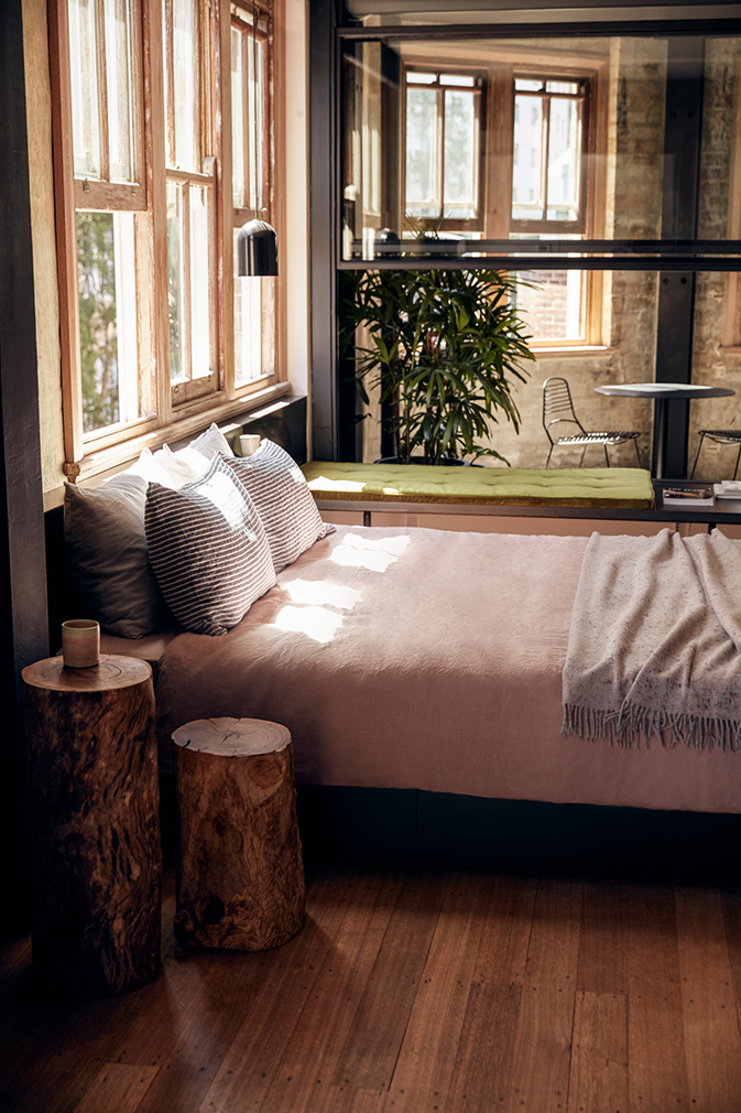 Rooms range from the Everyday to the Mack Daddy suite, complete with four light-drenched spaces. Interiors are thoughtfully considered from terrazzo-tiled bathrooms and timber floors, to Japanese-style wooden bathes in several of the rooms. Furnishings from a host of Australian makers reflect the local-centric ethos including Aesop amenities, Selijak merino blankets and curated artwork from nearby China Heights gallery.