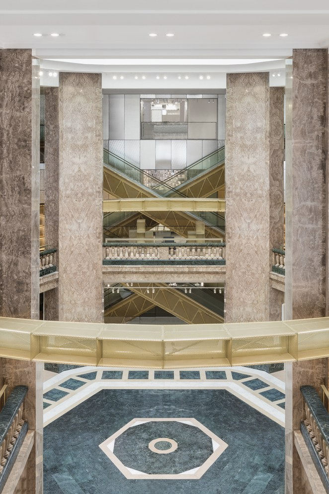 Spanning four floors and 70,000 square feet, the new Galeries Lafayette was conceived by Danish architect Bjarke Ingels. The 1930s art deco design has been maintained, including the original staircase, while modern interventions have been made to enhance the shopping experience inside the concept store.