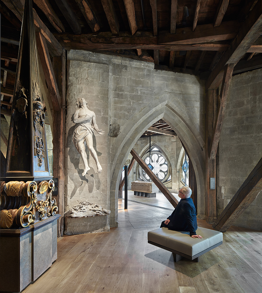 The gallery is reached via a new tower designed by Ptolemy Dean – the first major addition to the Grade I-listed building since 1745 – dubbed the Weston Tower. The star-shaped structure is inspired by the Gothic pattern found across the abbey’s interiors, and sits between the 13th-century Chapter House and 16th-century Lady Chapel.