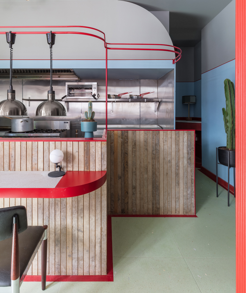 Every fixture and item of furniture has been custom-designed for the London restaurant – the brainchild of brothers Alastair and Nicholas Heathcote – with the studio also shaping Piraña’s graphic identity.