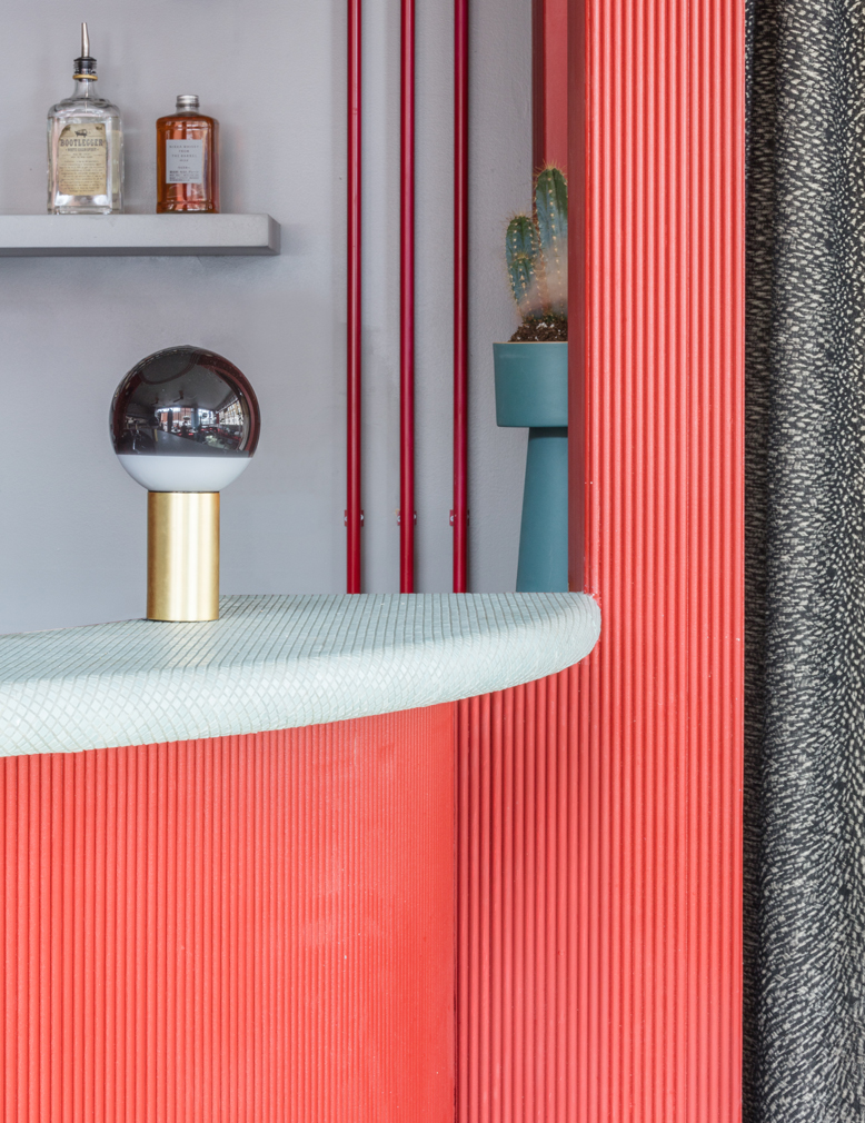 Piraña’s bold, retro scheme is a new direction for the studio. ‘We’ve been tagged with using quite a lot of womb-like shades. In this project we’ve managed to avoid the typecast!’ says co-founder Gayle Noonan. ‘We adore experimenting with new styles and palettes.’