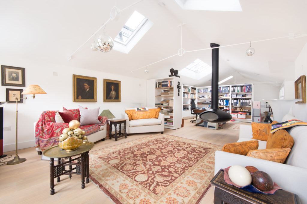 The master suite with its vaulted ceiling takes over most of the first floor, including a sauna and dressing room. The roof terrace links it to the study and media rooms, which have the scope to be transformed into an additional two bedrooms.