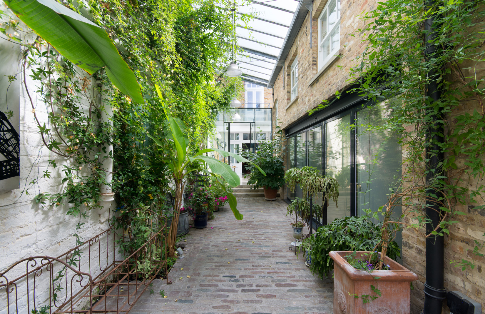 A cluster of studios has undergone a radical transformation into a five-bedroom house stretching the length of a private mews in London’s Notting Hill.