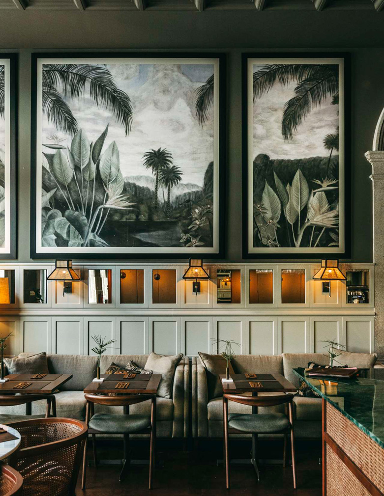 Guests won’t be short on things to admire, with walls filled with fans, masks, textiles and artwork, and even the odd travelling trunk that’s been repurposed by the practice as furniture. Local craftsmen have also added to the interiors, creating everything from handmade tassels for guest rooms to rattan and marble counters for the hotel bar.