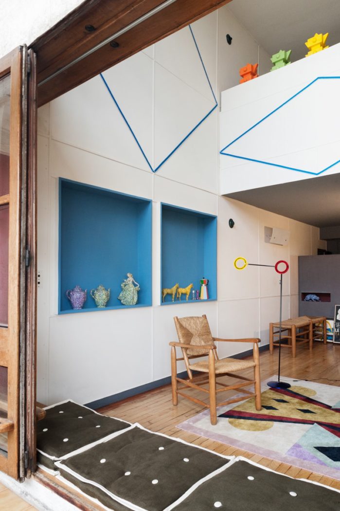 For the 2016 edition, Mendini, also an architect, furnished the apartment with some of his Postmodern designs, including his Proust armchair from 1978. He also created eight totems, each coloured differently to match Le Corbusier’s original palette for the space.
