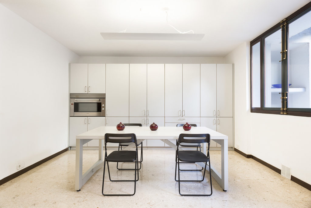 It’s now on the market via ILRE – International Luxury Real Estate with price on application and has had a recent update. Spaces are like inhabitable Mondrian paintings thanks to bold bursts of colour and carefully curated art and design pieces, which contrast Venetian floors and soaring arched windows.