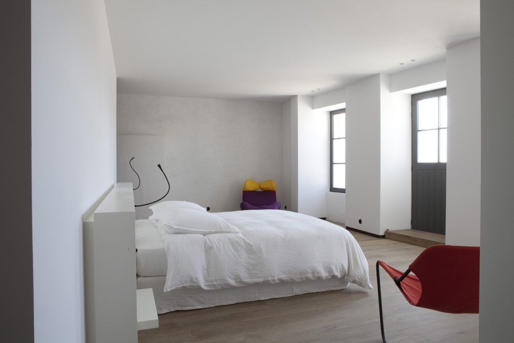 The French architect transformed this former shipyard – now on the market with Propriétés Parisiennes – in 2010. Sited in the harbour of the French island’s port of Saint-Martin-de-Ré, it comprises a duo of conjoined buildings sandwiched between two other listed structures.