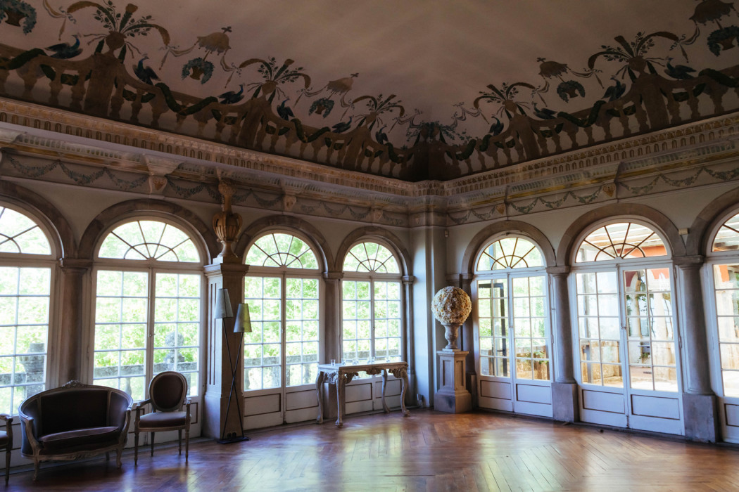 Casa dos Penedos was created with entertaining in mind: at the heart of the property are the vast living and dining rooms, with soaring, painted ceilings. A separate salon – designed to accommodate Mrs Ferreira’s passion for performance and theatre – peels off the living room.