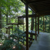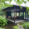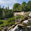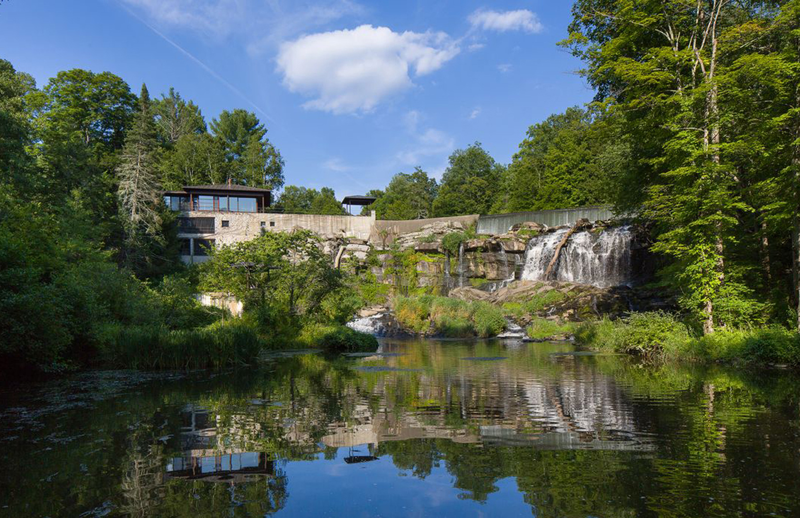 This 1985 home – sitting atop a waterfall on New York’s Landsman Kill River – melds a treehouse with a sleek Modernist box.