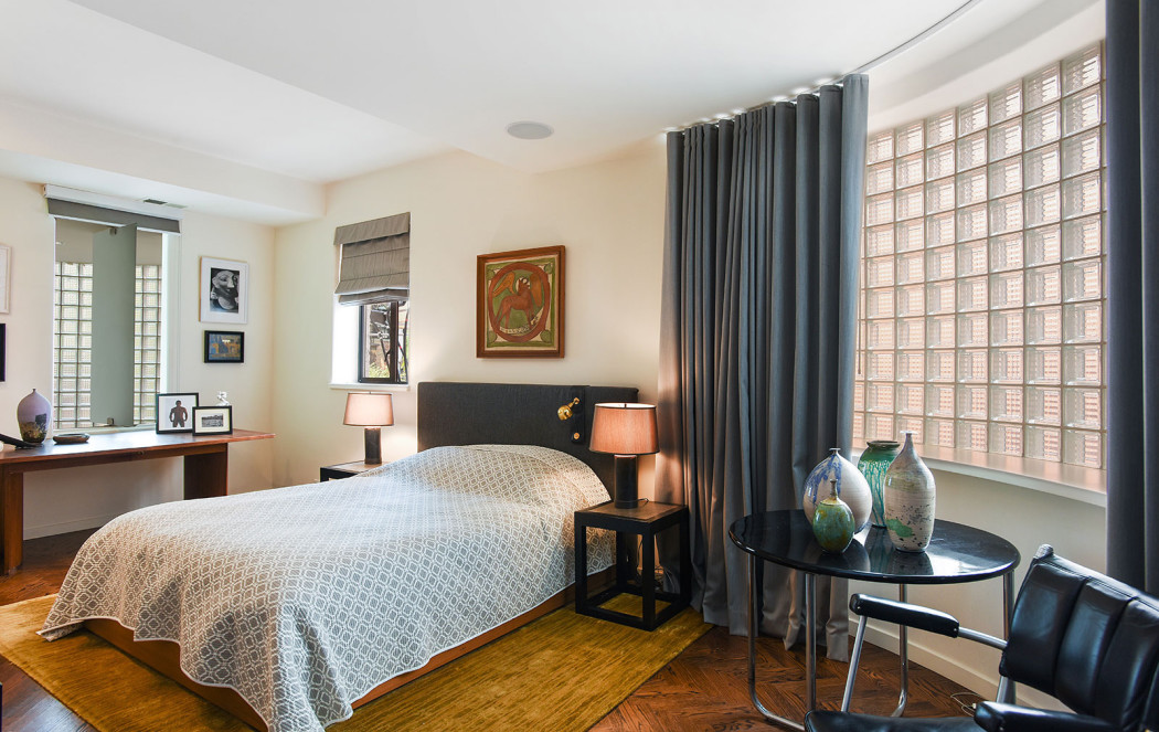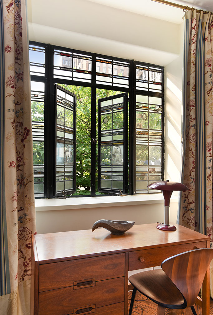 The previous owner revamped the space, installing a stainless steel kitchen and rescuing Miller’s steel-framed stained glass windows. Bellenger brought in modern Herman Miller furniture, and his works of art include an authentic Matisse tapestry and a classical sculpture by Joseph Bernard. There are signs the deft pairings will continue. Some of the furniture may be bundled with the property by way of auction and buyers with a formidable Corbusier collection are apparently eyeing the unit.