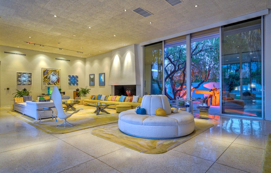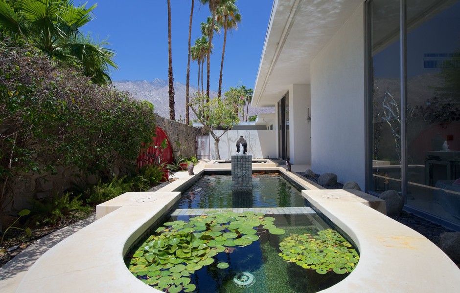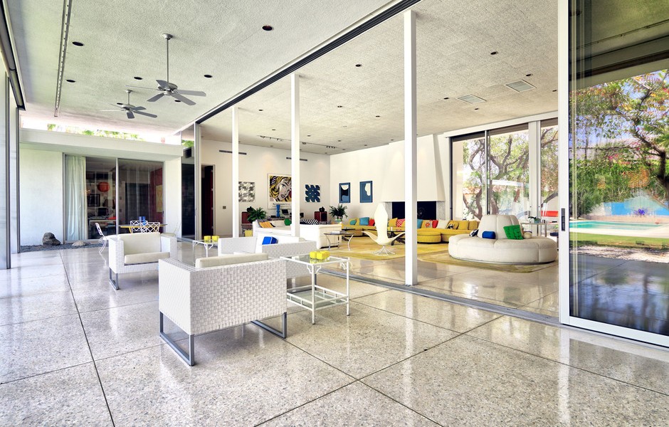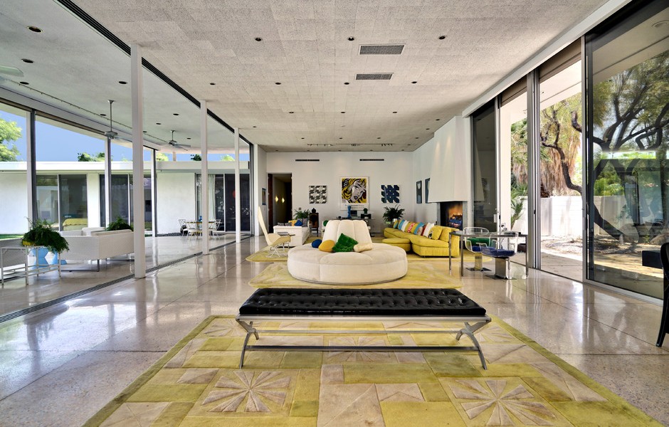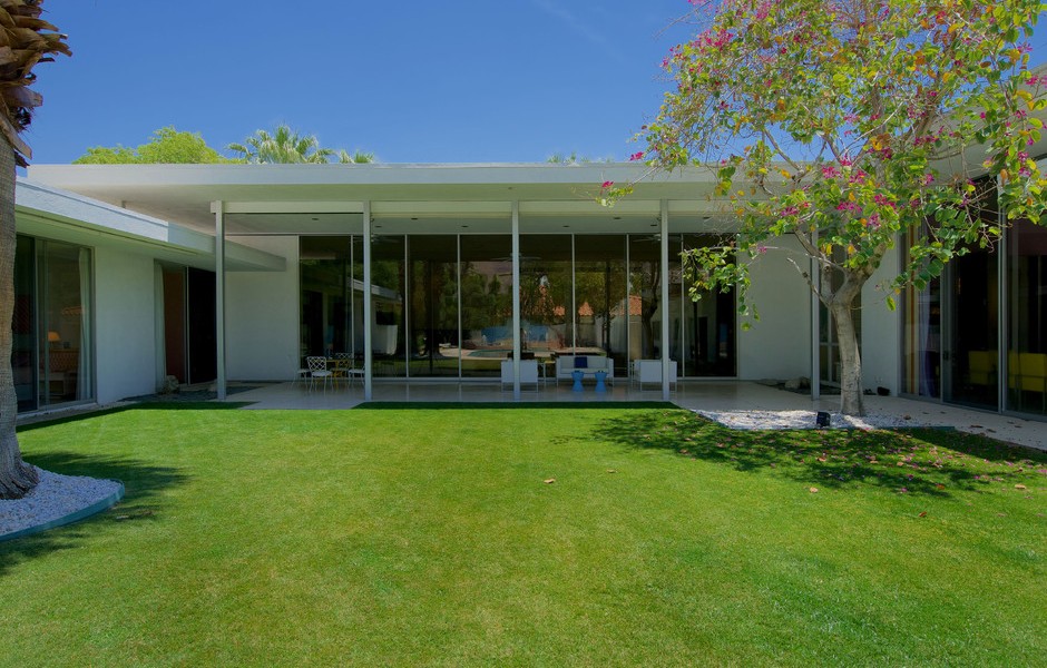 Designed by architect Howard Lapham in 1966, the nine-bedroom house offers a taste of Desert Modernism, typified by clean lines and expansive glass volumes.