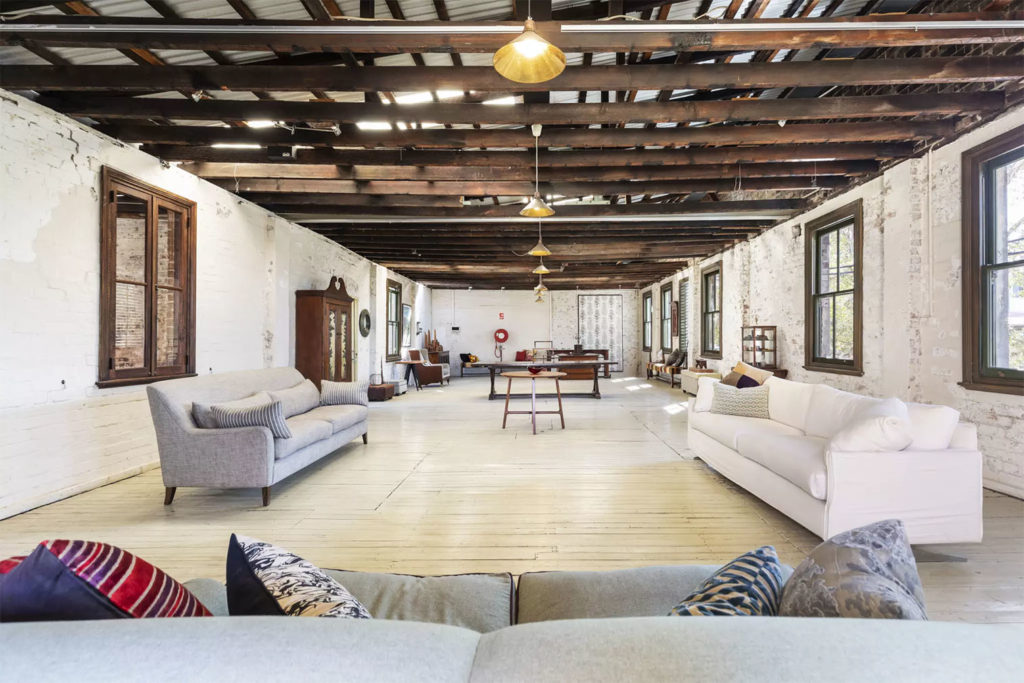 The Sydney property, which could be used as a live work space and has existing commercial rights, also retains its original barn doors as well as polished and painted timber floorboards.