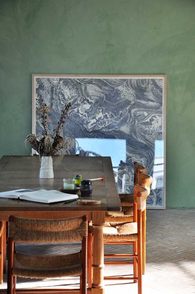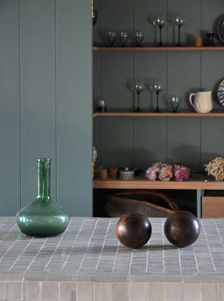 ‘Our choice of material was inspired by our travels around Morocco and the riads we visited in Marrakech, where we got married,’ says the couple. ‘These tiles were then laid out in Herringbone and Basketweave patterns, and interlocking geometries found in traditional courtyard houses in Suzhou, China, where we have travelled with our young daughter, Max. Casting your eye across the floor is like reading a woven visual map of our travels and history.’