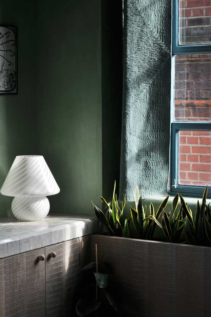 ‘We found the views towards St Leonard’s church and the treetops surrounding it very inspiring, as they are such a beautiful contrast to the very urban landscape at street level,’ says Zoe and Merlin. ‘To echo and amplify the verdant views out of the windows, we developed a palette of soft greens and blues inside.’
