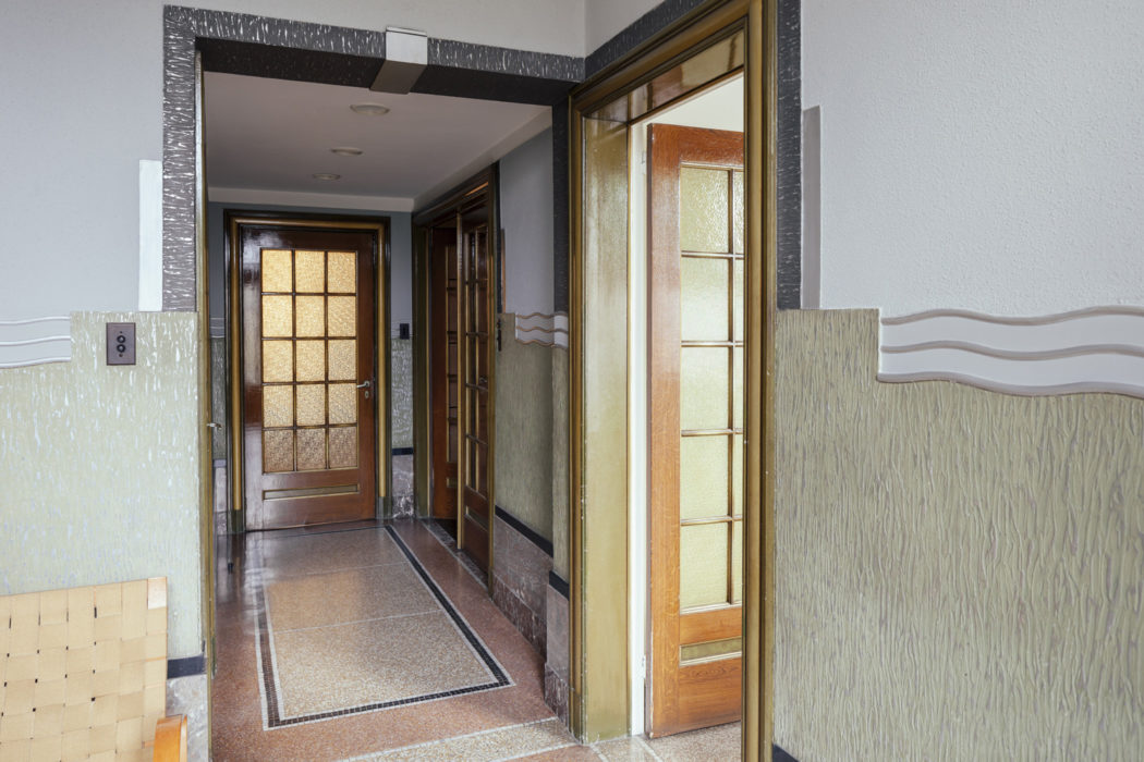 Art Deco flourishes are visible in the Antwerp property’s interior arches, mosaic floors, painted panelling, ornamental fireplaces and the dramatic sweep of the wooden staircase.