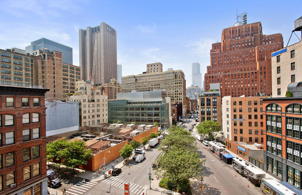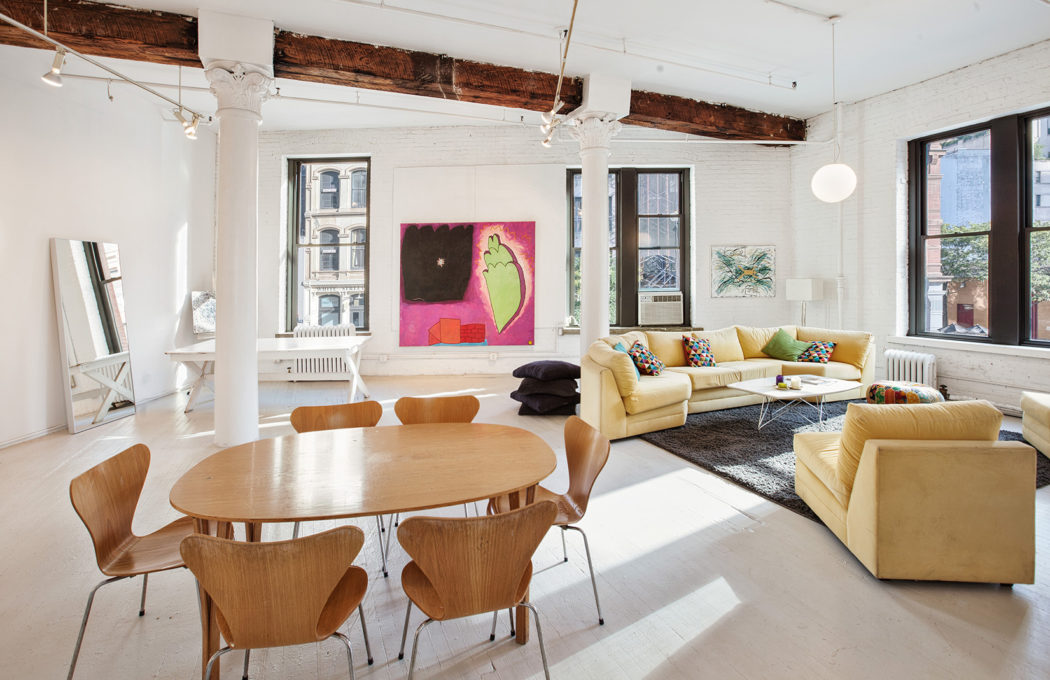 Set over 1,418 sq ft, the Tribeca bolthole – on the market for $2.5m via Douglas Elliman – comes with a wealth of industrial features that exaggerate its lofty proportions. These include soaring 12 ft ceilings, oversized windows and crisp, white-washed brick walls.