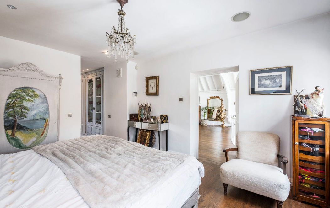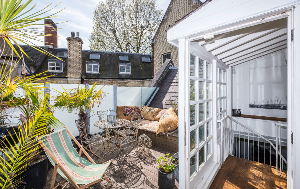 Also on this floor is the master bedroom, which has access to a 111-sq-ft terrace with a conservatory and rooftop views across Shoreditch.
