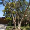 Three bedrooms fill the short arm of the L, and are stocked with period features such as painted brick walls, cork floors and timber-slatted ceilings. Custom cabinetry and wood-panelling have also been preserved throughout the midcentury Australian home.